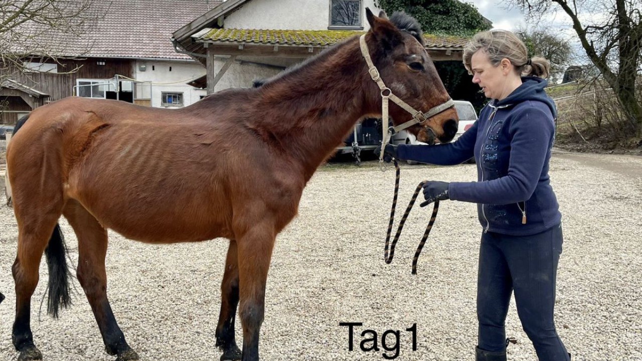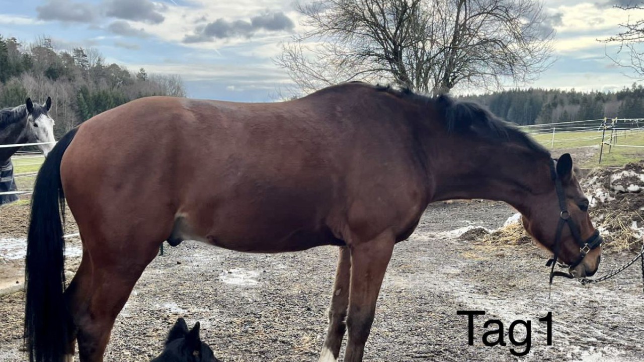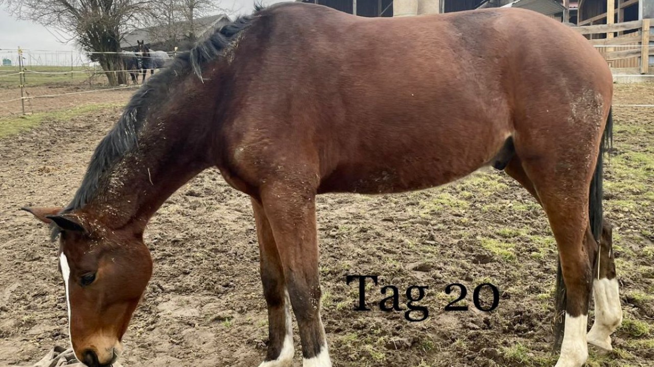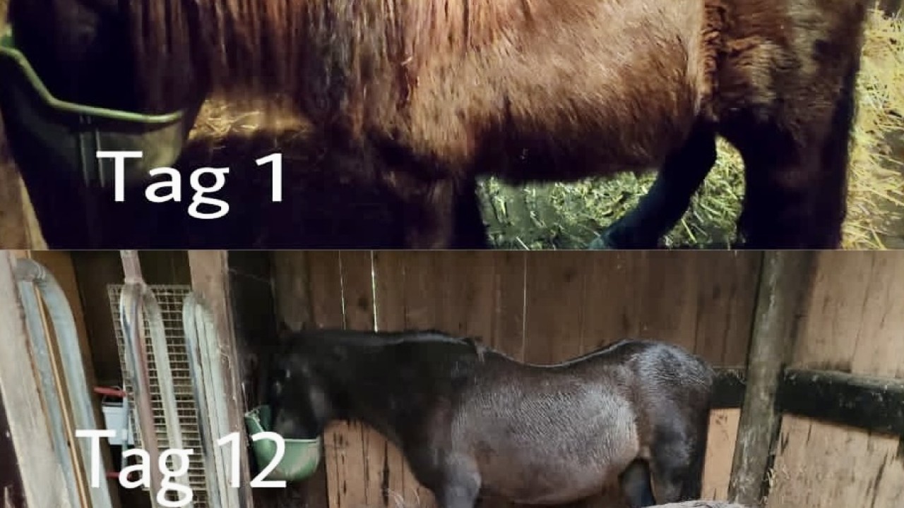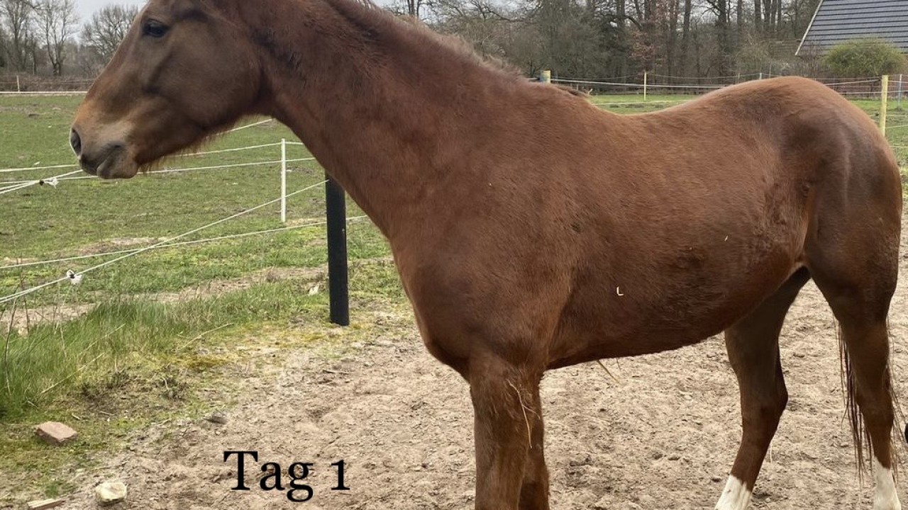 Der Allgemeinzustand von Claudias Stute Cindy hat sich dank PegasusPro® erheblich verbessert: „Meiner Cindy ging es seit November 2022 immer schlechter, kompletter Verlust der Muskulatur, wollte sich nicht mehr hinlegen, war ab Januar 2023 nicht mehr zu reiten, sie konnte nicht mehr. Wir haben verschiedene Präparate gegeben, ohne Erfolg. Dann stand eines Tage plötzlich Werner (der Entwickler von PegasusPro®) bei uns an der Koppel und sagte zu mir, Dein Pferd braucht Hilfe. Werner hat mir einen Eimer PegasusPro® gegeben und nach nur 12 Stunden konnten wir die ersten, zarten positiven, Veränderungen erkennen. Cindy fing an wieder Heu zu fressen, ich habe sie, nach nur 3 Tagen PegasusPro®, zwei Stunden pro Tag anweiden lassen. Was soll ich sagen, kein Kotwasser, im Gegenteil super Äppel und sie begann sofort sichtbar zuzunehmen. Der bereits angefangene Fellwechsel, war nach einer Woche komplett abgeschlossen. Ein tolles Futter das ich zur Sommer- und Wintersonnenwende wieder meiner Cindy anbieten werde.“